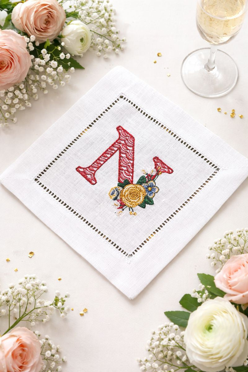 Elevate your cocktail hour with our made-to-order, custom embroidered cocktail napkins.