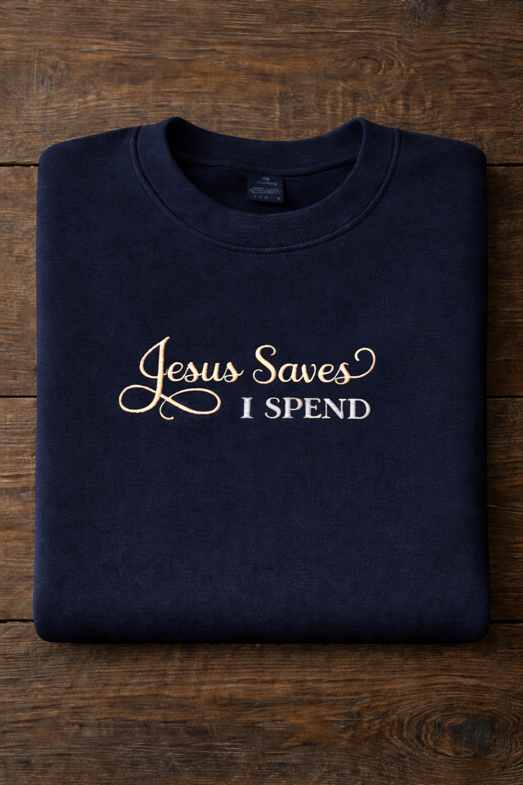 EMBROIDERED JESUS SAVES I SPEND - GILDAN SOFT STYLE ADULT CREWNECK SWEATSHIRT